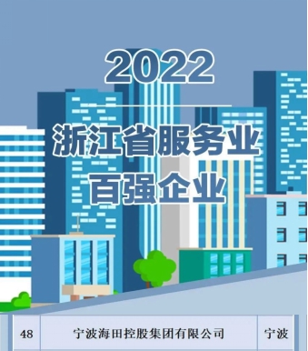 9月21日,浙江省企業(yè)聯(lián)合會、省企業(yè)家協(xié)會、省工業(yè)經(jīng)濟聯(lián)合會聯(lián)合發(fā)布了2022浙江省企業(yè)綜合百強榜及制造業(yè)、服務業(yè)、競爭力百強榜。其中,寧波海田控股集團有限公司上榜《2022浙江省服務業(yè)百強企業(yè)》,排名第48位。