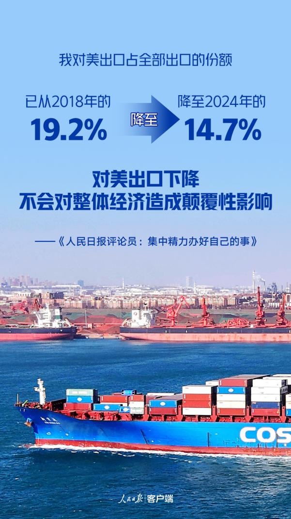 但要看到,中國是超大規(guī)模經(jīng)濟體,面對美國的關(guān)稅霸凌沖擊,我們具有強大的抗壓能力。近年來我們積極構(gòu)建多元化市場,對美市場依賴已在下降。我對美出口占全部出口的份額已從2018年的19.2%降至2024年的14.7%,對美出口下降不會對整體經(jīng)濟造成顛覆性影響。美國內(nèi)不少產(chǎn)品對我依存度較高。當(dāng)前美國不僅在很多消費品上離不開中國,很多投資品和中間產(chǎn)品也需要從中國進口,有若干品類依存度超過50%,短期內(nèi)在國際市場上很難找到替代來源。在全球產(chǎn)供鏈深度交融的大背景下,中美貿(mào)易不可能完全中斷。新興市場經(jīng)貿(mào)合作潛力巨大,日益成為我穩(wěn)外貿(mào)的重要基礎(chǔ)。我國是全球150多個國家和地區(qū)的主要貿(mào)易伙伴,2018年以來,我對東盟出口占比由12.8%提升到16.4%,對共建“一帶一路”國家出口占比由38.7%提升到47.8%,且保持較快增長勢頭。國內(nèi)市場緩沖空間廣闊,是重要的大后方。據(jù)統(tǒng)計,2024年我有出口實績的數(shù)十萬家企業(yè)中,接近85%的企業(yè)同時開展內(nèi)銷業(yè)務(wù),內(nèi)銷金額占銷售總額的近75%。國家正加快打通“出口轉(zhuǎn)內(nèi)銷”政策堵點、卡點,擴內(nèi)需各項政策也在加力擴圍,內(nèi)需市場的容納效應(yīng)將日益顯現(xiàn)。